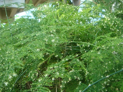 名前はアスパラガス・セタケウス(和名:シノブボウキ)…南アフリカ原産、キジカクシ科(ユリ科)アスパラガス属の植物です