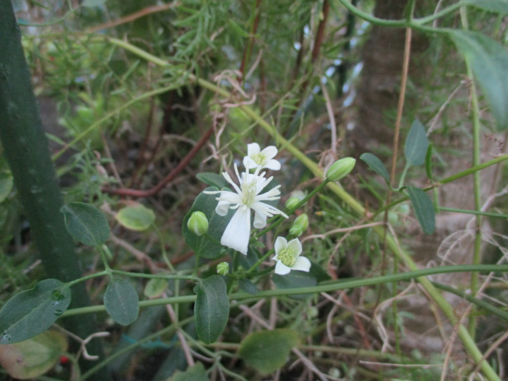ローズマリーはジャングルコーナー入口の左側足元付近、センニンソウはジャングルコーナーに入って右側(アスパラガスメイリーの奥)、セイロンライティアはジャングルコーナー出口の向かい側(センネンボクの近く)にあります。