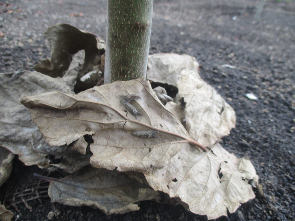 昨年12月に越冬を始めた総勢140匹のオオムラサキの幼虫達、長い眠りから目を覚まし、4/10に大好物のエノキの根元に放たれました。昨年は猛暑の中でも前年を上回る24匹の羽化に成功しましたが、果たして今年は何匹の幼虫が綺麗な蝶の姿を見せてくれるでしょうか?