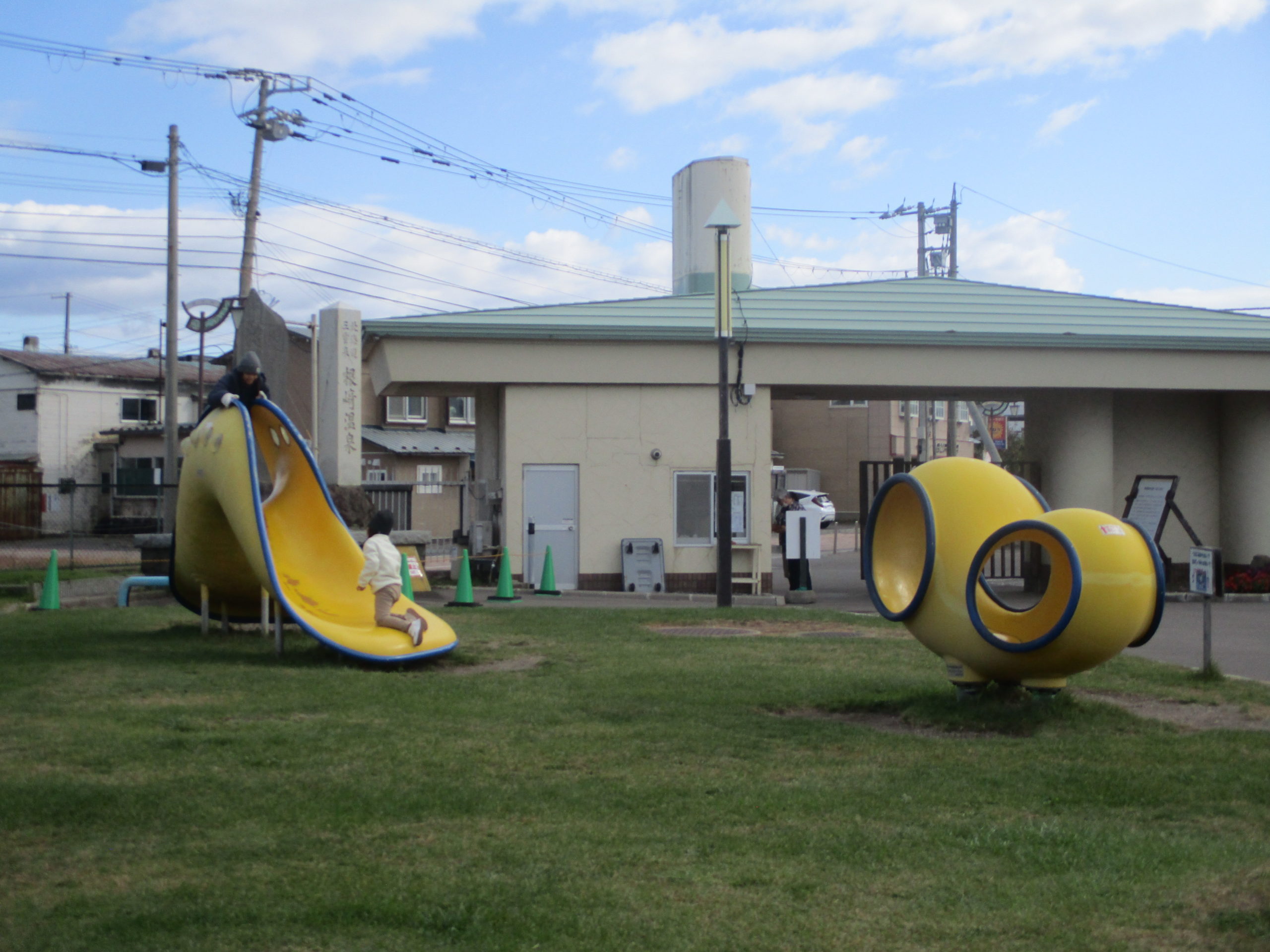 滑り台のクリーパー、中に入ったり揺らしたりして遊べるプルルンの遊具があります。