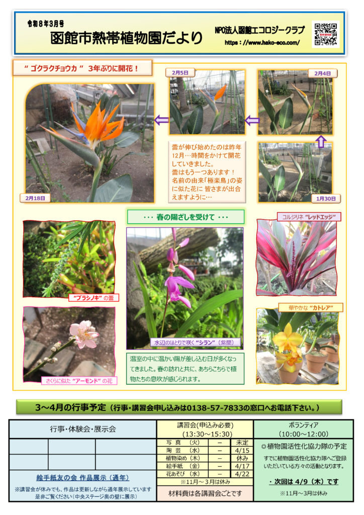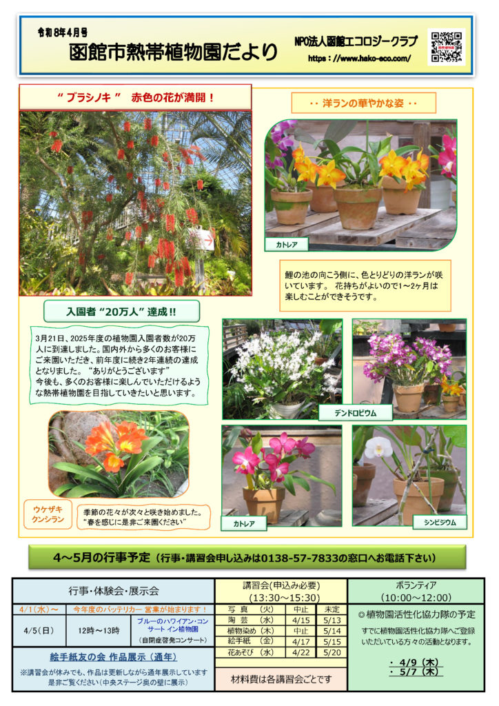 毎月の行事予定は「函館市熱帯植物園だより」(毎月発行)に掲載しています。